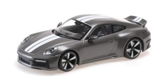 PORSCHE 911 (992) SPORT CLASSIC GREY METALLIC 2022 WITH STRIPE AND PORSCHE WRITINGMinichamps