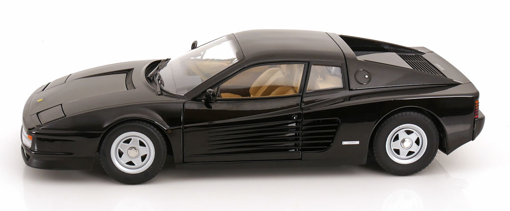 DIE CAST MODEL KK-SCALE FERRARI TESTAROSSA BLACK 1986 WITH OPENING DOORS, HOOD AND HEADLIGHTS SCALE 1/12