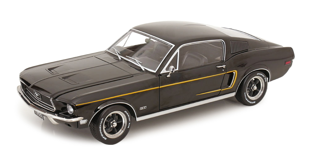 DIE CAST MODEL KK-SCALE FORD MUSTANG GT FASTBACK BLACK 1968 WITH OPENING DOORS AND BONNET SCALE 1/12