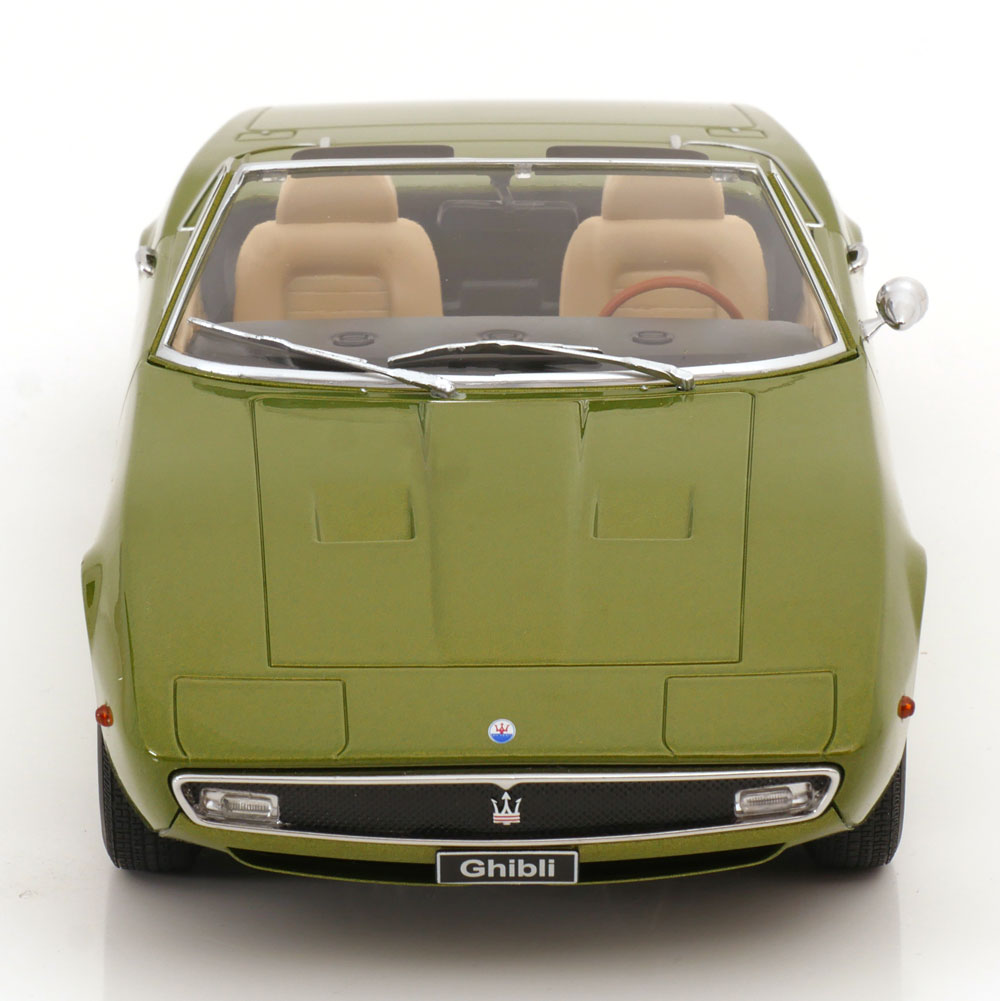 DIE CAST MODEL KK-SCALE MASERATI GHIBLI SPYDER LIGHT GREEN METALLIC WITH SPOKE RIMS 1970 SCALE 1/18