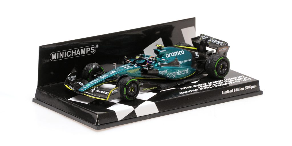 FULLY ASSEMBLED RESIN MODEL MINICHAMPS ASTON MARTIN AMR22 SEBASTIAN VETTEL SINGAPORE GP 2022 SCALE 1/43