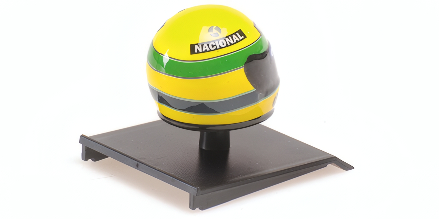 FULLY ASSEMBLED PLASTIC MODEL MINICHAMPS HELMET AYRTON SENNA 1985 SCALE 1/10