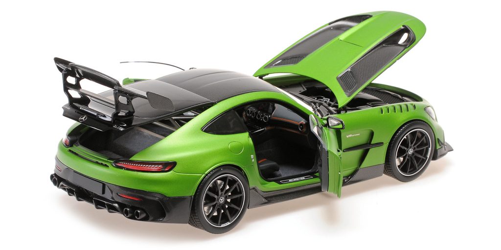 DIE CAST MODEL MINICHAMPS MERCEDES AMG GT BLACK SERIES MATT GREEN METALLIC 2021 WITH OPENINGS SCALE 1/18