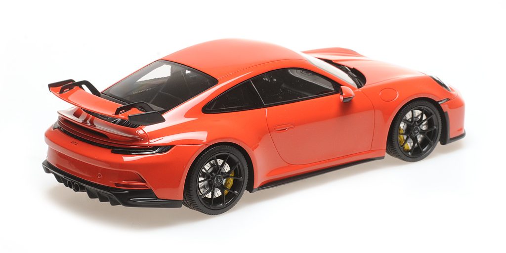 FULLY ASSEMBLED RESIN MODEL MINICHAMPS PORSCHE 911 (992) GT3 ORANGE WITH BLACK WHEELS 2021 SCALE 1/18