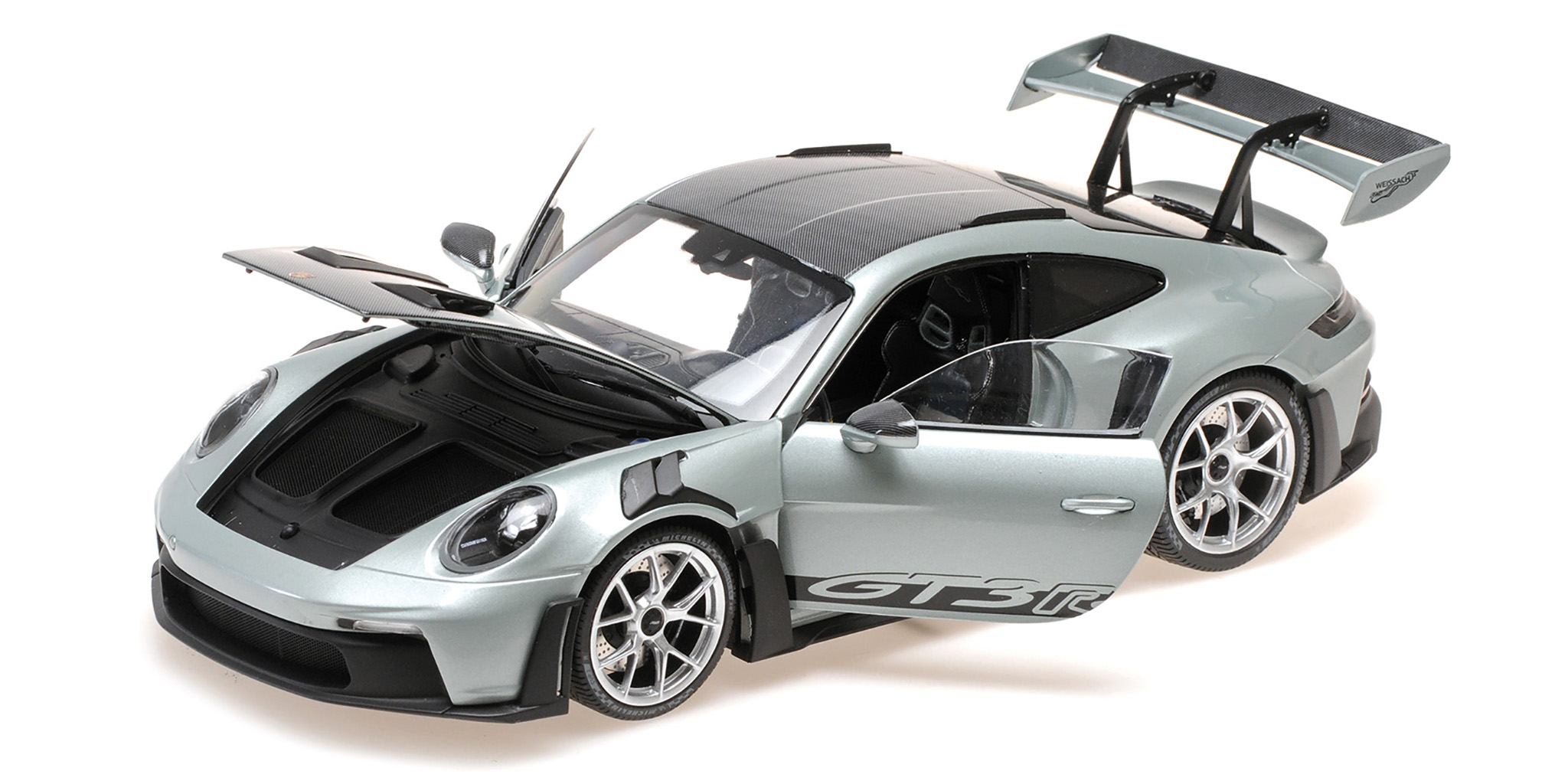 DIE CAST MODEL MINICHAMPS PORSCHE 911 (992) GT3RS SILVER 2023 WITH OPENINGS SCALE 1/18