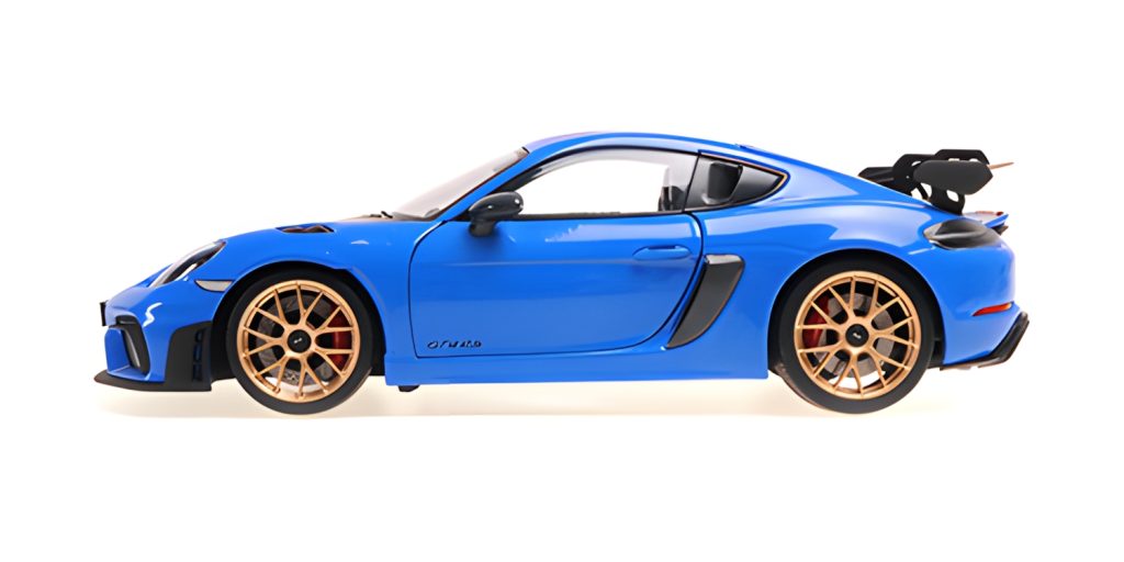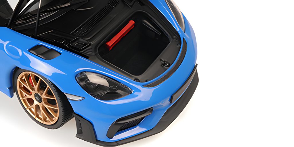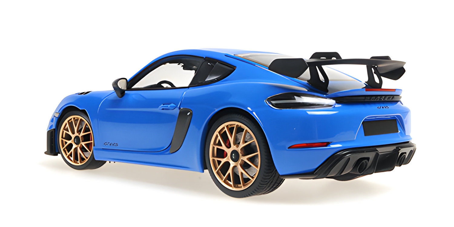 DIE CAST MODEL MINICHAMPS PORSCHE CAYMAN GT4 RS BLUE WITH WEISSACH PACKAGE 2024 WITH OPENINGS SCALE 1/18