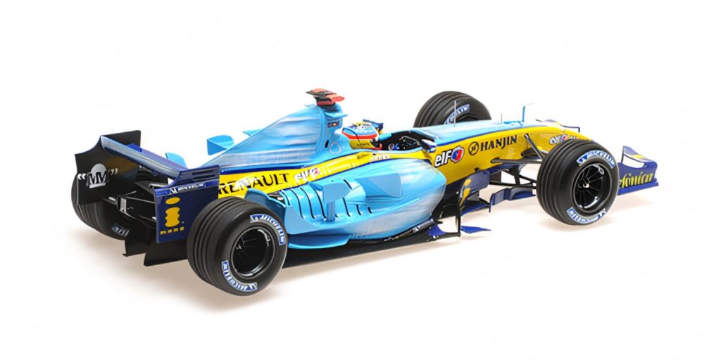 FULLY ASSEMBLED RESIN MODEL MINICHAMPS RENAULT F1 TEAM R25 FERNANDO ALONSO 3RD PLACE BRAZIL GP WORLD CHAMPION 2005 SCALE 1/18