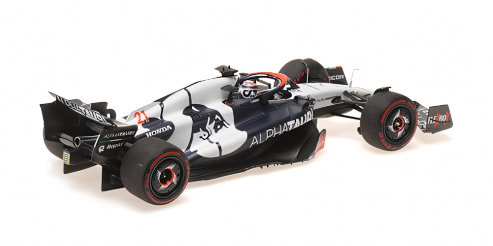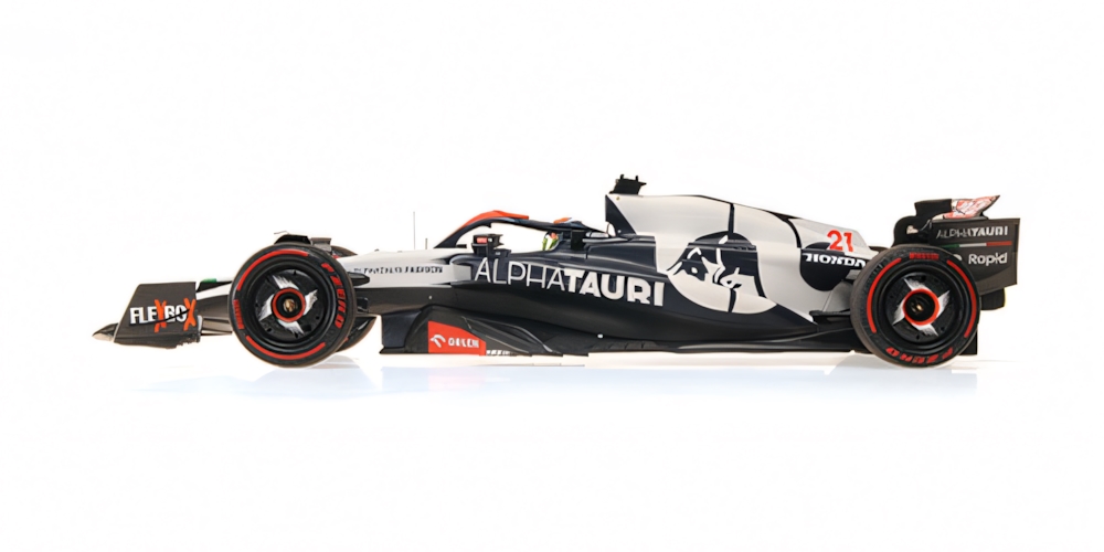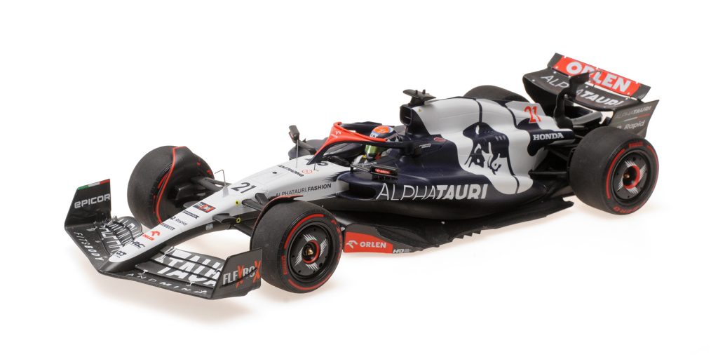 FULLY ASSEMBLED RESIN MODEL MINICHAMPS SCUDERIA ALPHATAURI AT04 NYCK DE VRIES LAST RACE BRITISH GP 2023 SCALE 1/18