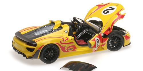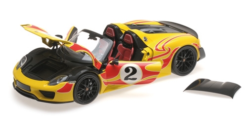 PORSCHE 918 SPYDER MARTINI WEISSACH PACKAGE YELLOW WITH RED STRIPES