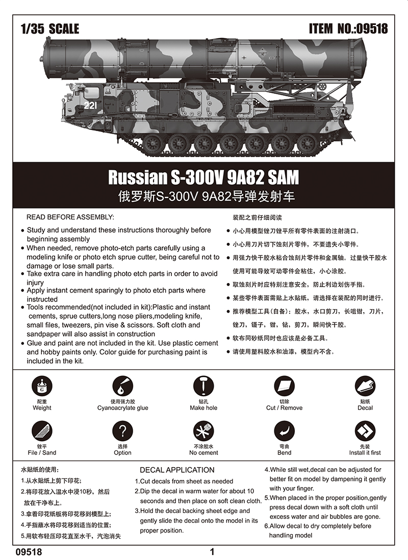 plastic kit TRUMPETER RUSSIAN S-300V 9A82 SAM SCALE 1/35