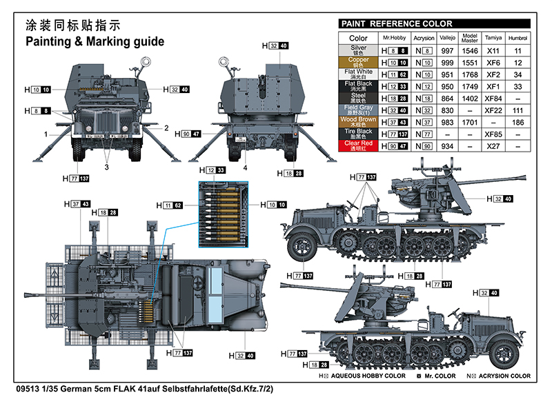 plastic kit TRUMPETER GERMAN 5cm FLAK 41 AUF SELBSTFAHRLAFETTE SD.KFZ.7/2 SCALE 1/35