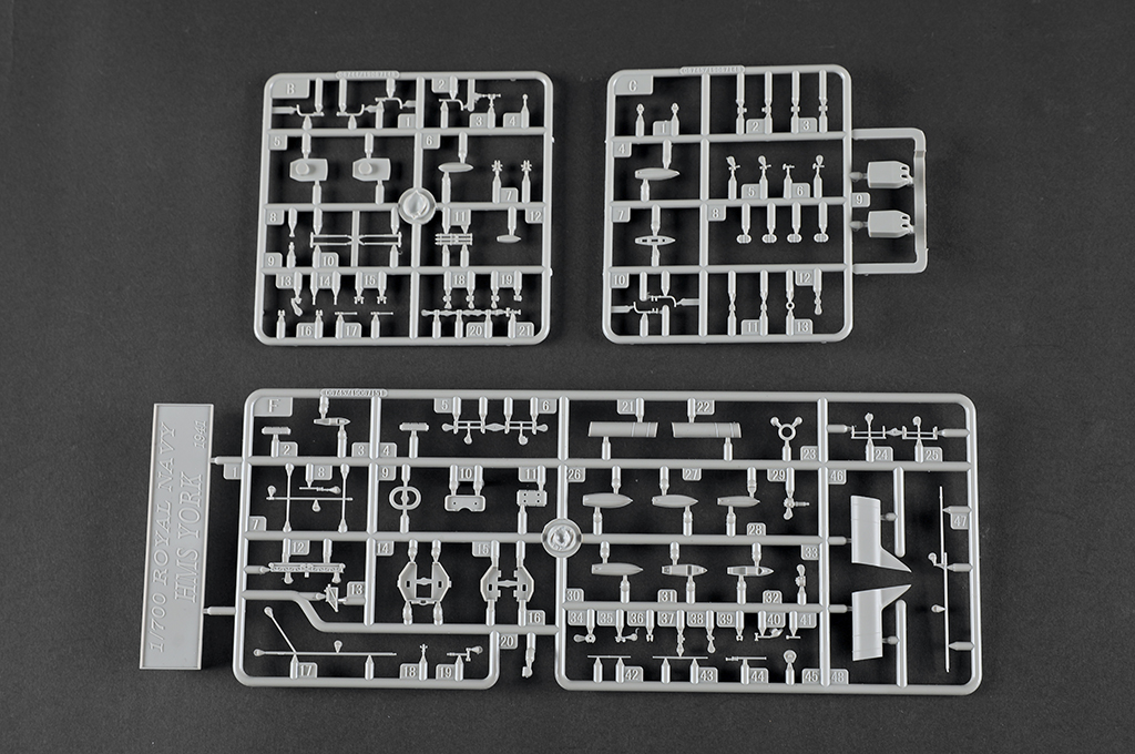 PLASTIC KIT TRUMPETER HMS YORK SCALE 1/700 GLUE NOT INCLUDED DIMENSION: 250.4 x 25 MM 200 PLASTIC PARTS