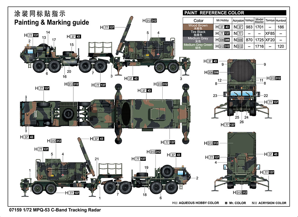 plastic kit TRUMPETER MPQ-53 C-BAND TRACKING RADAR SCALE 1/72