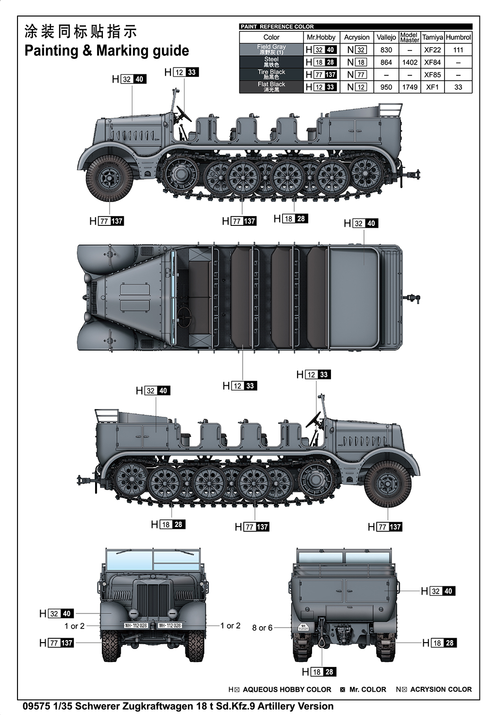 PLASTIC KIT TRUMPETER SCHWERER ZUGKRAFTWAGEN 18T SD.KFZ.9 ARTILLERY VERSION SCALE 1/35