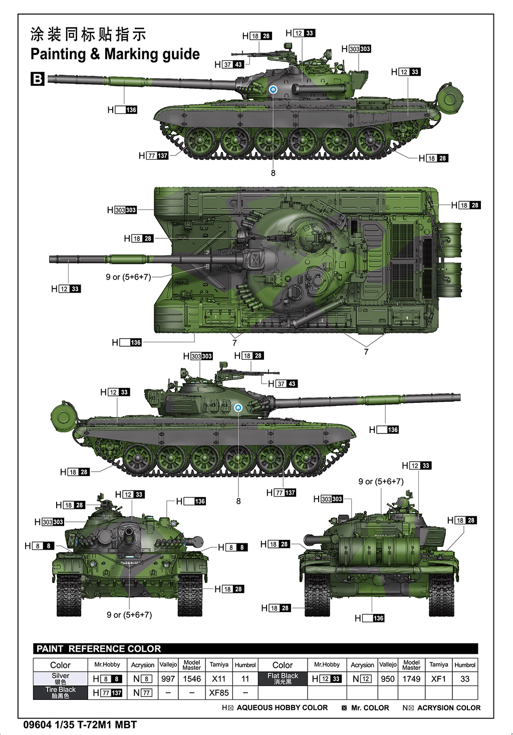 PLASTIC KIT TRUMPETER T-72M1 MBT SCALE 1/35 GLUE NOT INCLUDED 750 PLASTIC PARTS DIMENSION: 216 x 102 mm