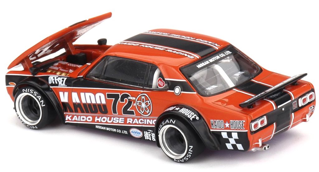 FULLY ASSEMBLED DIECAST MODEL TSM MODEL KAIDO HOUSE NISSAN SKYLINE 2000GT-R (KPGC10) KAIDO RACING V1 MINI-GT WITH OPENING HOODS SCALE 1/64