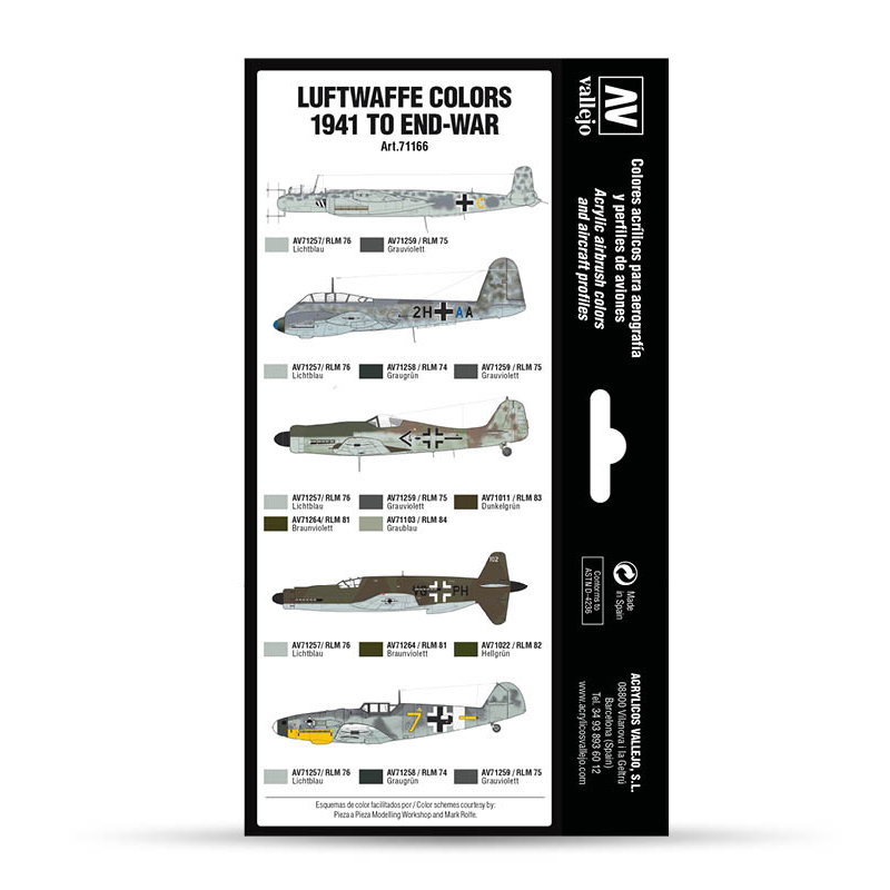 VALLEJO LUFTWAFFE COLORS 1941 TO END-WAR SET 8 COLORS 17 ML