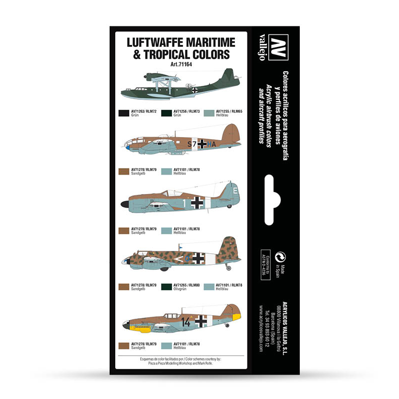 VALLEJO LUFTWAFFE MARITIME AND TROPICAL COLORS 1941 TO END-WAR SET 8 COLORS 17 ML
