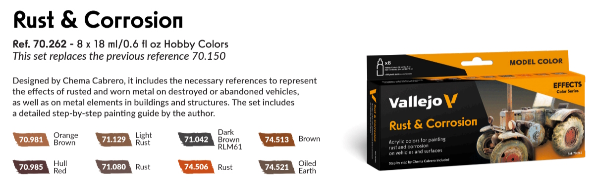 VALLEJO RUST & CORROSION SET 8 COLORS 18 ML