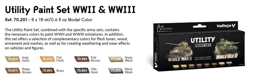 VALLEJO UTILITY PAINT SET WWII & WWIII SET 8 COLORS 18 ML