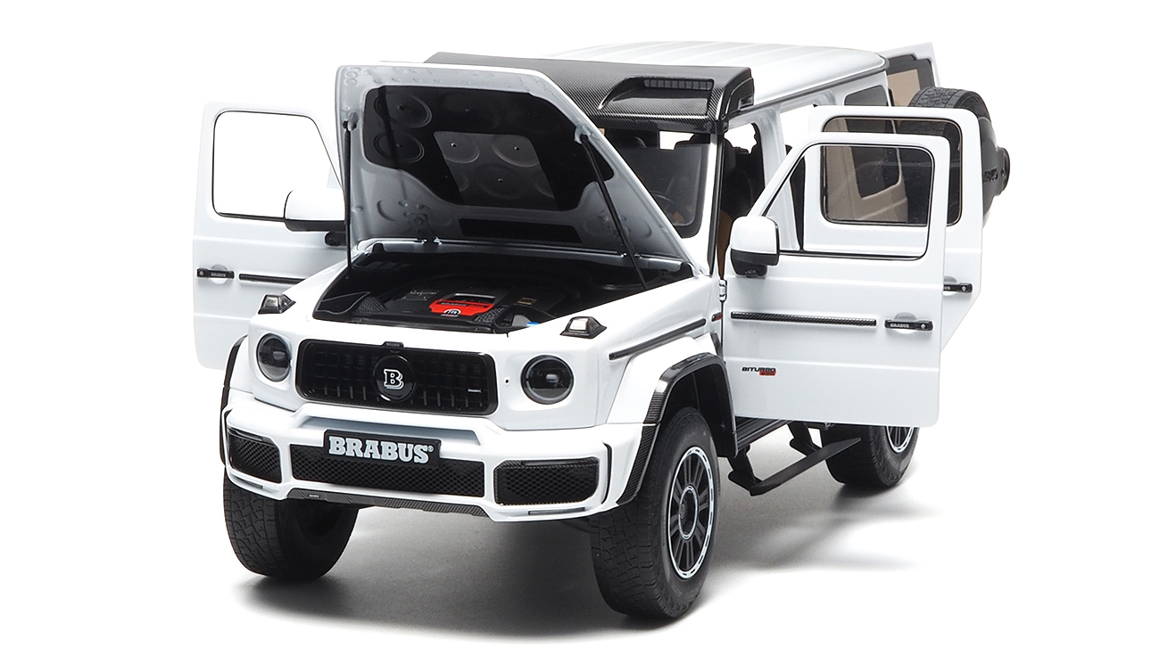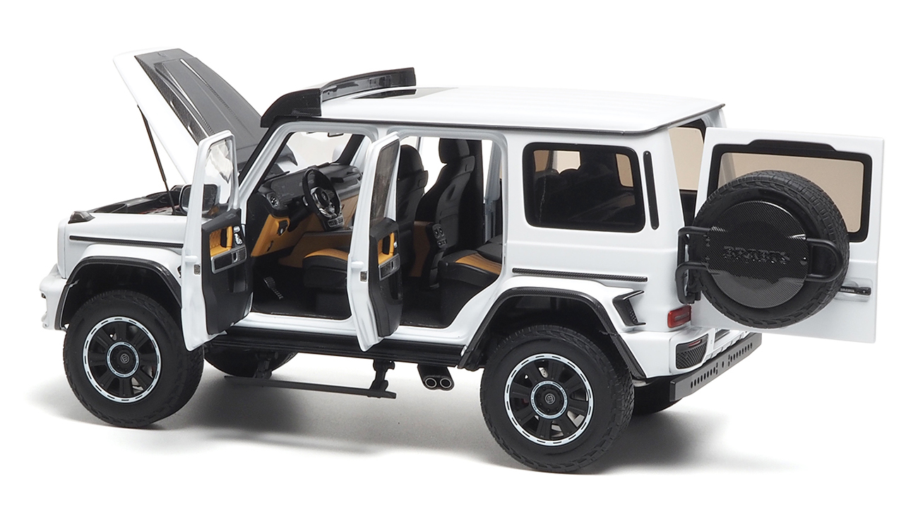 MODELLINO ALMOST REAL MONTATO E VERNICIATO IN METALLO BRABUS G-CLASS G 63 4×4 DIAMOND WHITE 2023 SCALA 1/18