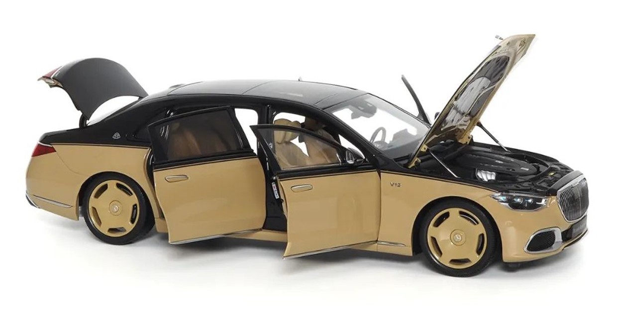 MODELLINO ALMOST REAL MONTATO E VERNICIATO IN METALLO MERCEDES MAYBACH S-CLASS OBSIDIAN BLACK & SAND 2021 SCALA 1/18