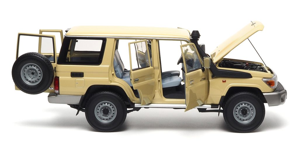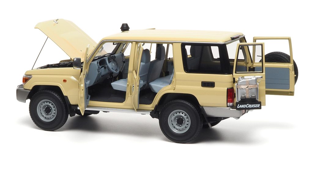 MODELLINO ALMOST REAL MONTATO E VERNICIATO IN METALLO TOYOTA LAND CRUISER 76 CREAM 2017 SCALA 1/18