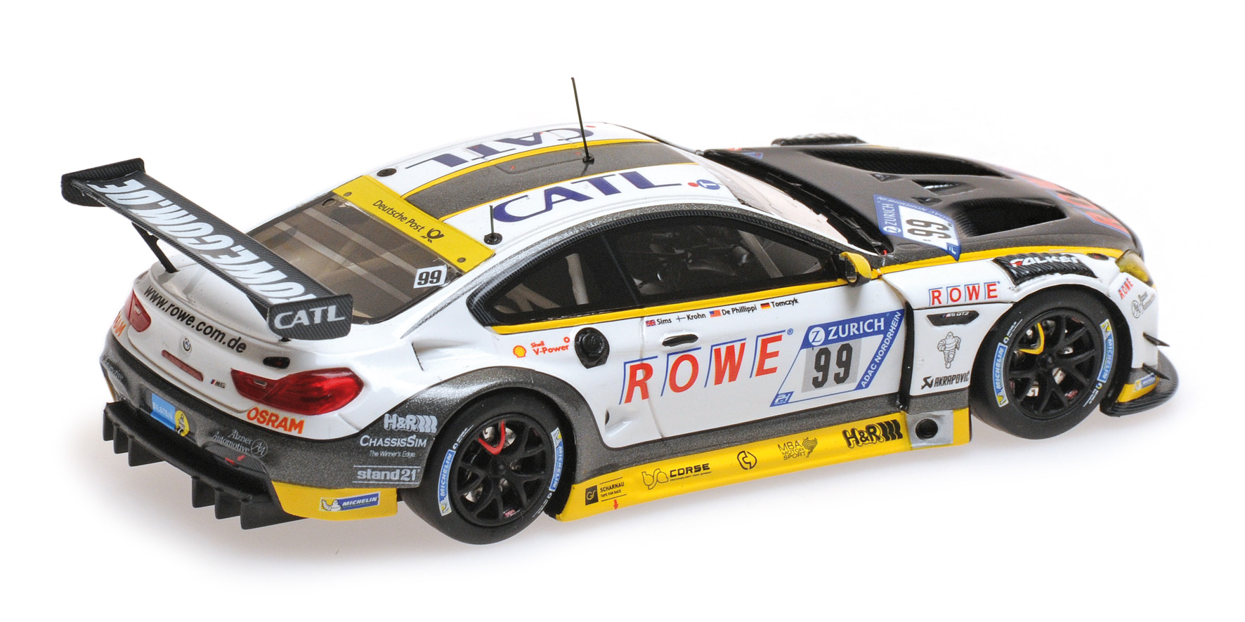 MODELLINO MINICHAMPS MONTATO E VERNICIATO IN RESINA BMW M6 GT3 ROWE RACING SIMS KROHN DE PHILLIPPI TOMCZYK 24H NURBURGRING 2018 SCALA 1/43