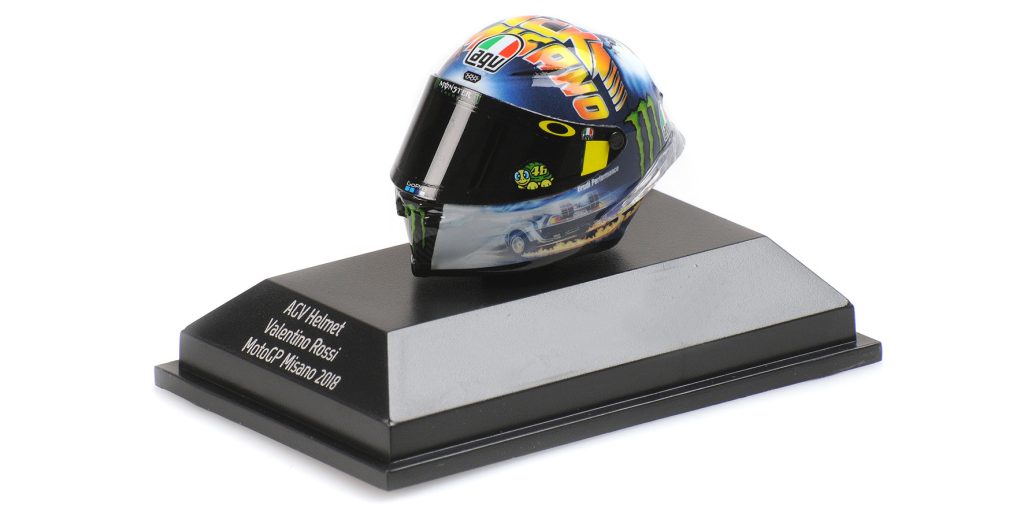 MODELLINO MINICHAMPS MONTATO E VERNICIATO IN METALLOCASCO AGV VALENTINO ROSSI MOTOGP MISANO 2018 SCLA 1/8