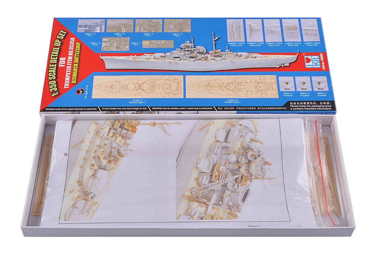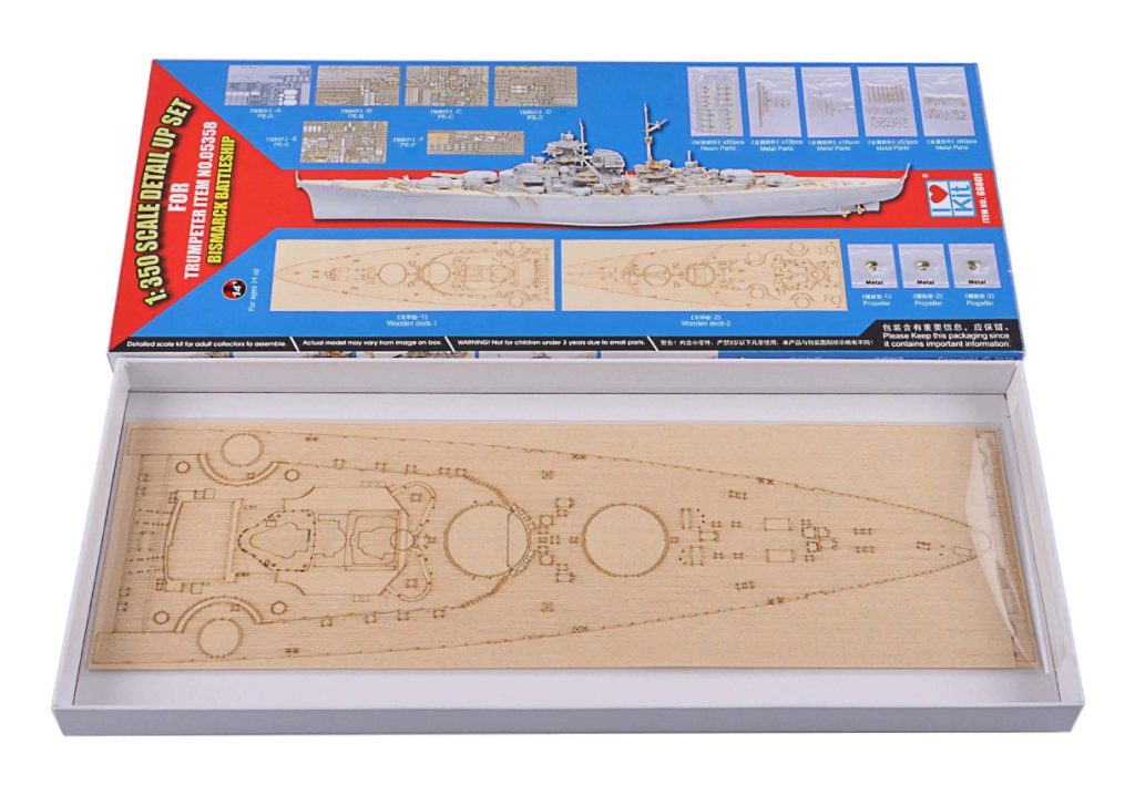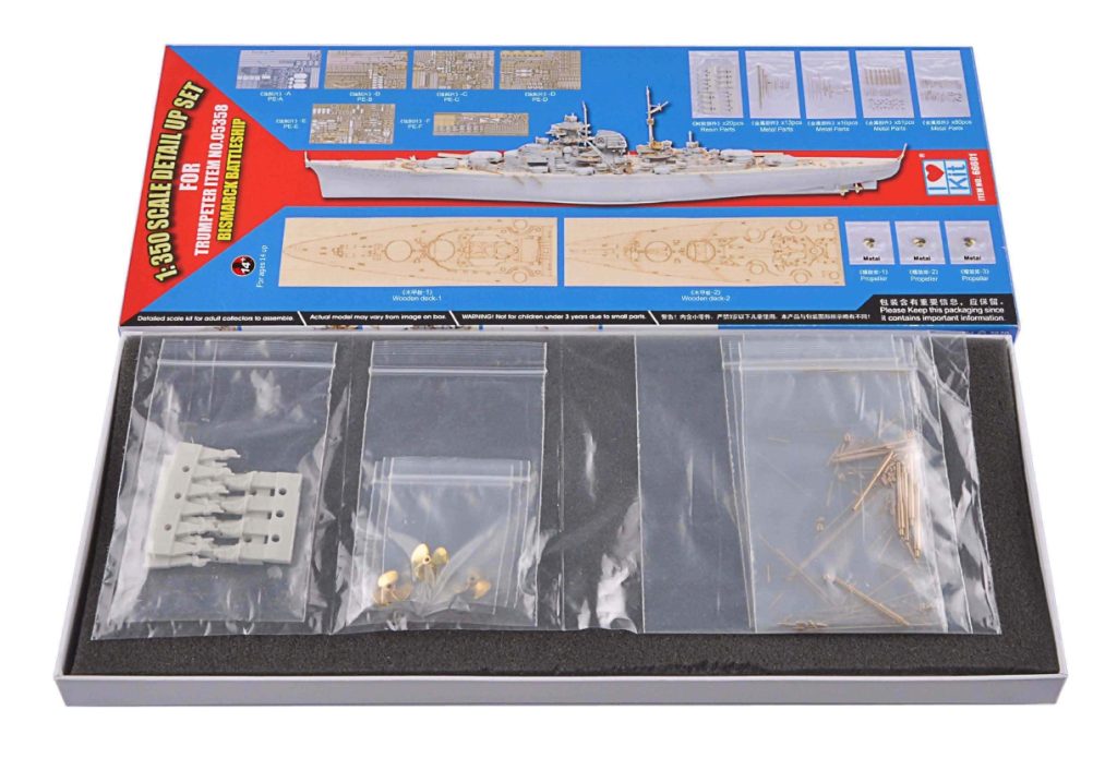 I LOV KIT: FOTOINCISIONI, PARTI IN METALLO E PONTE LEGNO PER LA BISMARCK SCALA 1/350