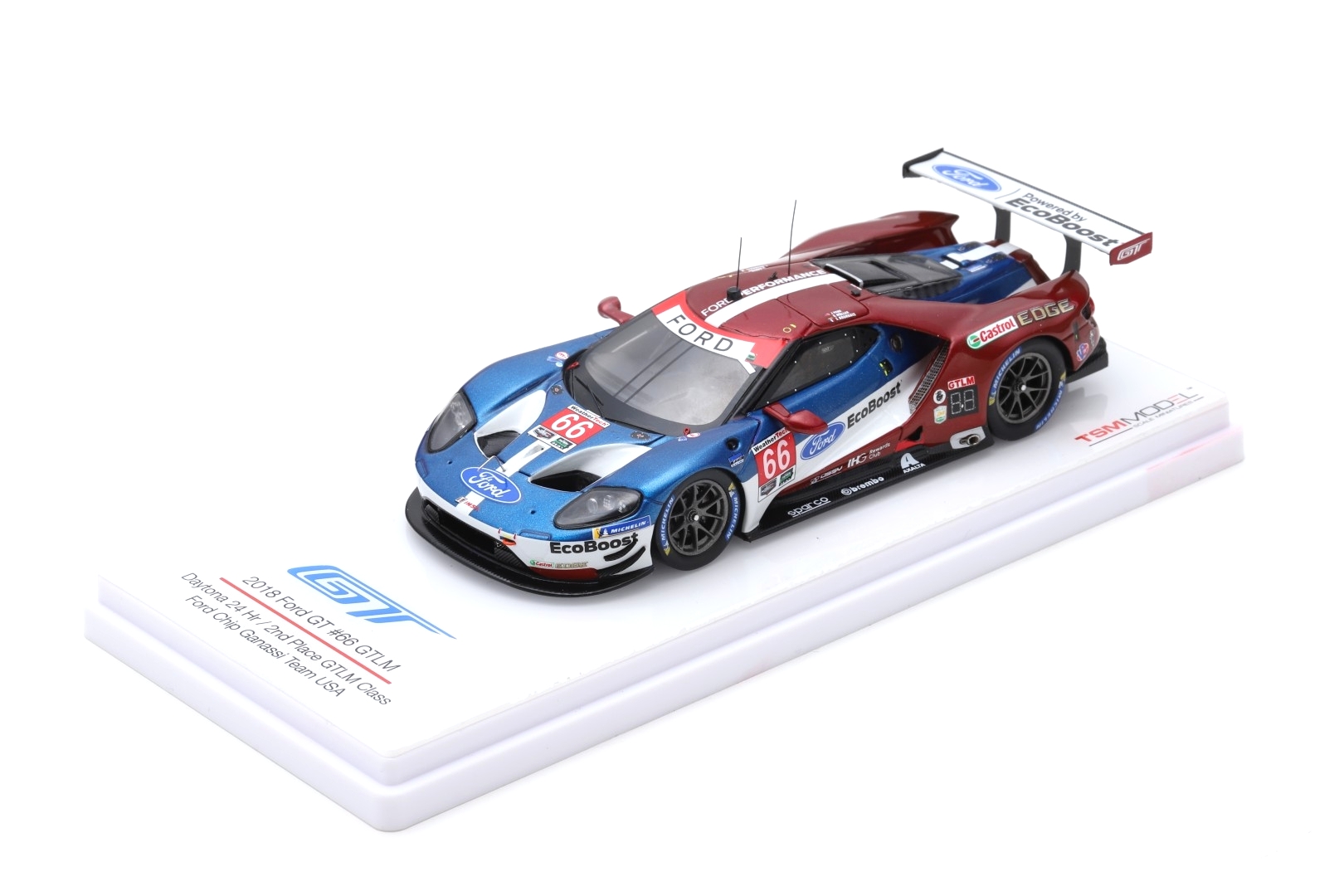 MODELLINO TSM MODEL MONTATO E VERNICIATO IN RESINA FORD GT GTLM #66 FORD CHIP GANASSI TEAM USA 2ND PLACE GTLM CLASS 24H DAYTONA 2018 SCALA 1/43