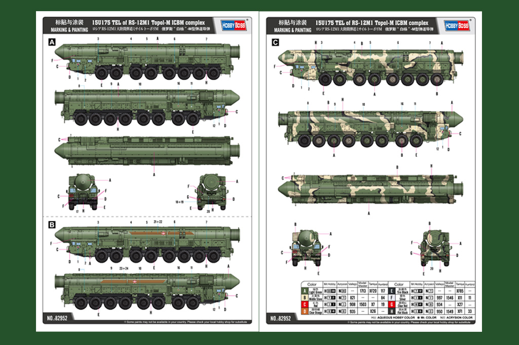 SCATOLA DI MONTAGGIO IN PLASTICA HOBBY BOSS 15U175 TEL OF RS-12M1 TOPOL-M ICBM COMPLEX SCALA 1/72