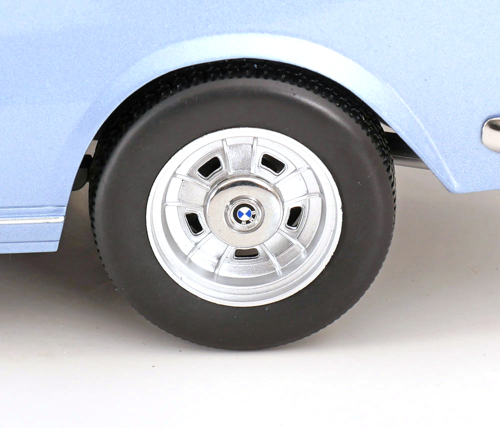 MODELLINO KK-SCALE MONTATO E VERNICIATO IN METALLO BMW 3.0 CSI E9 LIGHT BLUE METALLIC WITH ALUMINIUM RIMS 1971 CON PORTIERE E COFANO APRIBILI SCALA 1/12