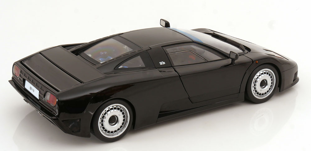 MODELLINO KK-SCALE MONTATO E VERNICIATO IN METALLO CON PORTIERE E COFANO APRIBILI BUGATTI EB110 BLACK 1991 SCALA 1/12