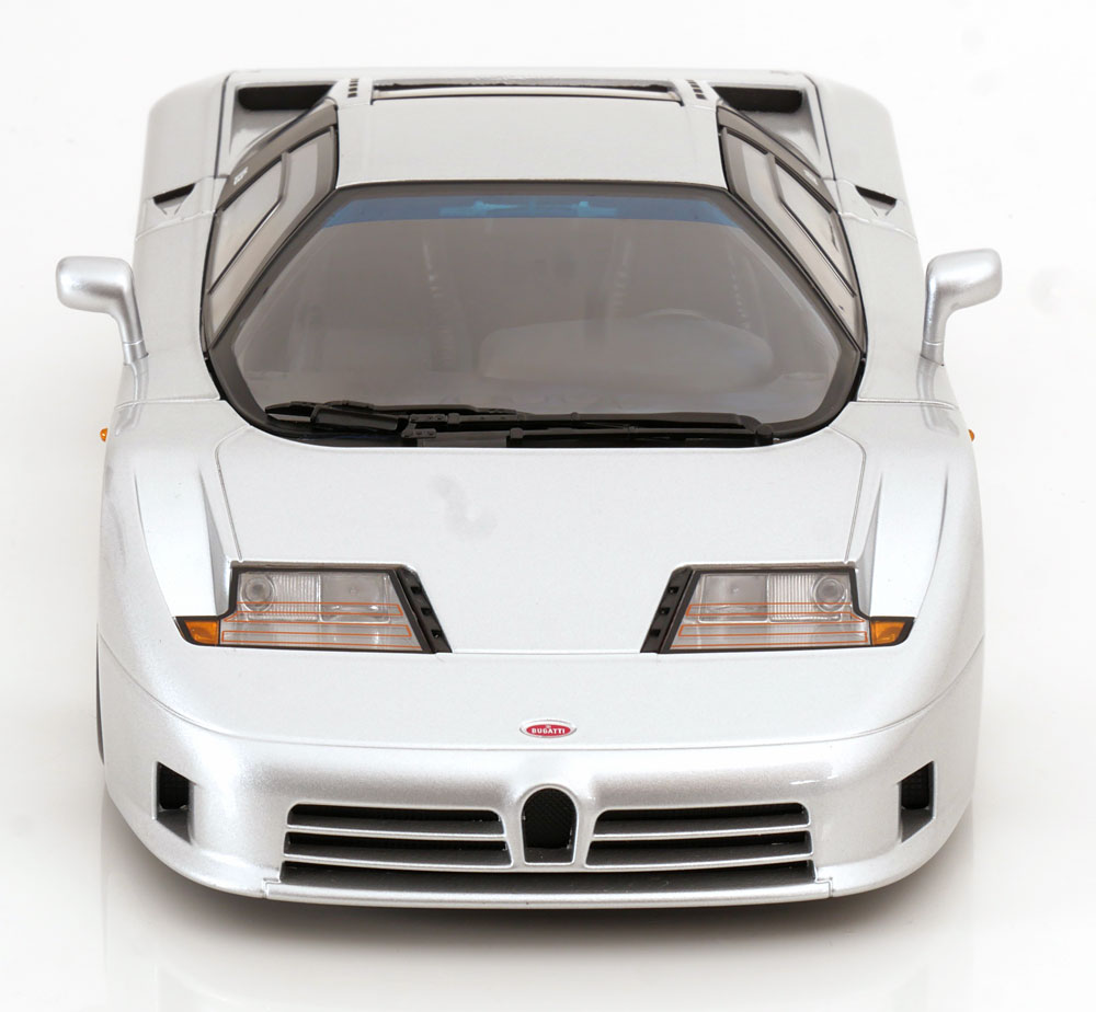 MODELLINO KK-SCALE MONTATO E VERNICIATO IN METALLO CON PORTIERE E COFANO APRIBILI BUGATTI EB110 SILVER 1991 SCALA 1/12