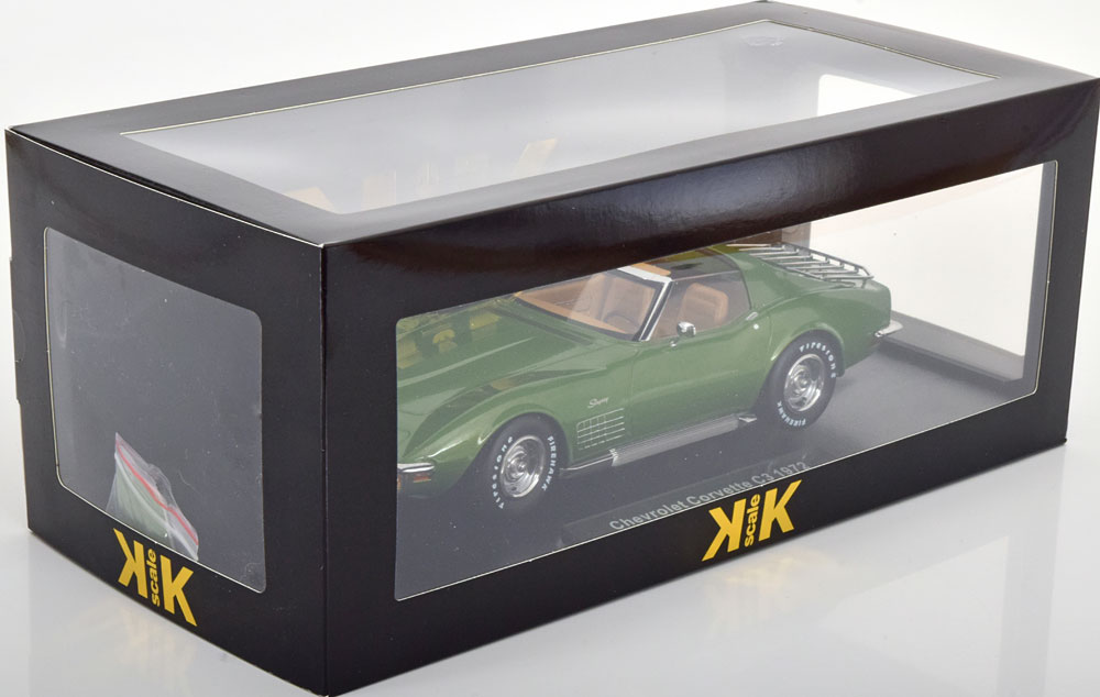MODELLINO KK-SCALE MONTATO E VERNICIATO IN METALLO CHEVROLET CORVETTE C3 GREEN METALLIC 1972 SCALA 1/18