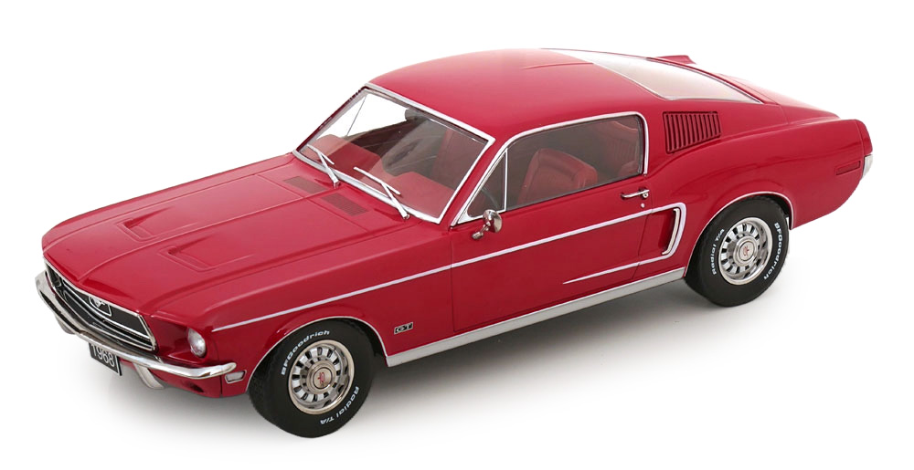 MODELLINO KK-SCALE MONTATO E VERNICIATO IN METALLO FORD MUSTANG GT FASTBACK RED 1968 SCALA 1/18