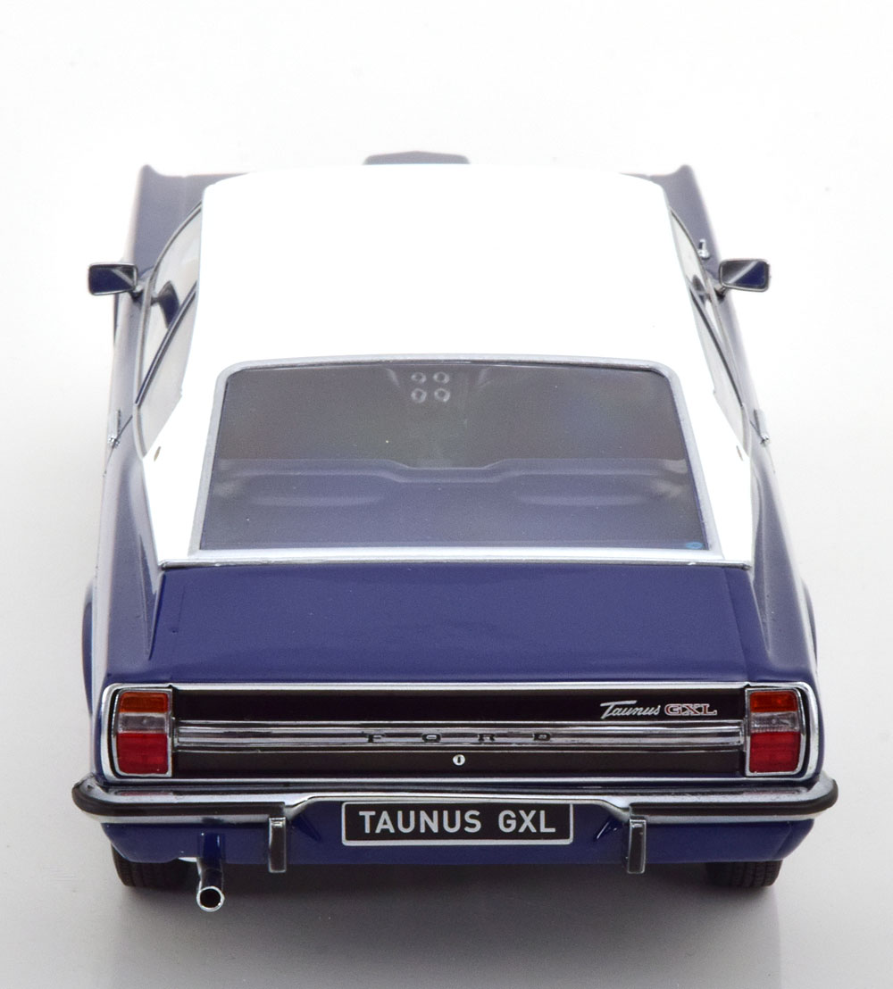 MODELLINO KK-SCALE MONTATO E VERNICIATO IN METALLO FORD TAUNUS GXL COUPE WITH VINYL ROOF DARK BLUE & FLAT WHITE 1971 SCALA 1/18