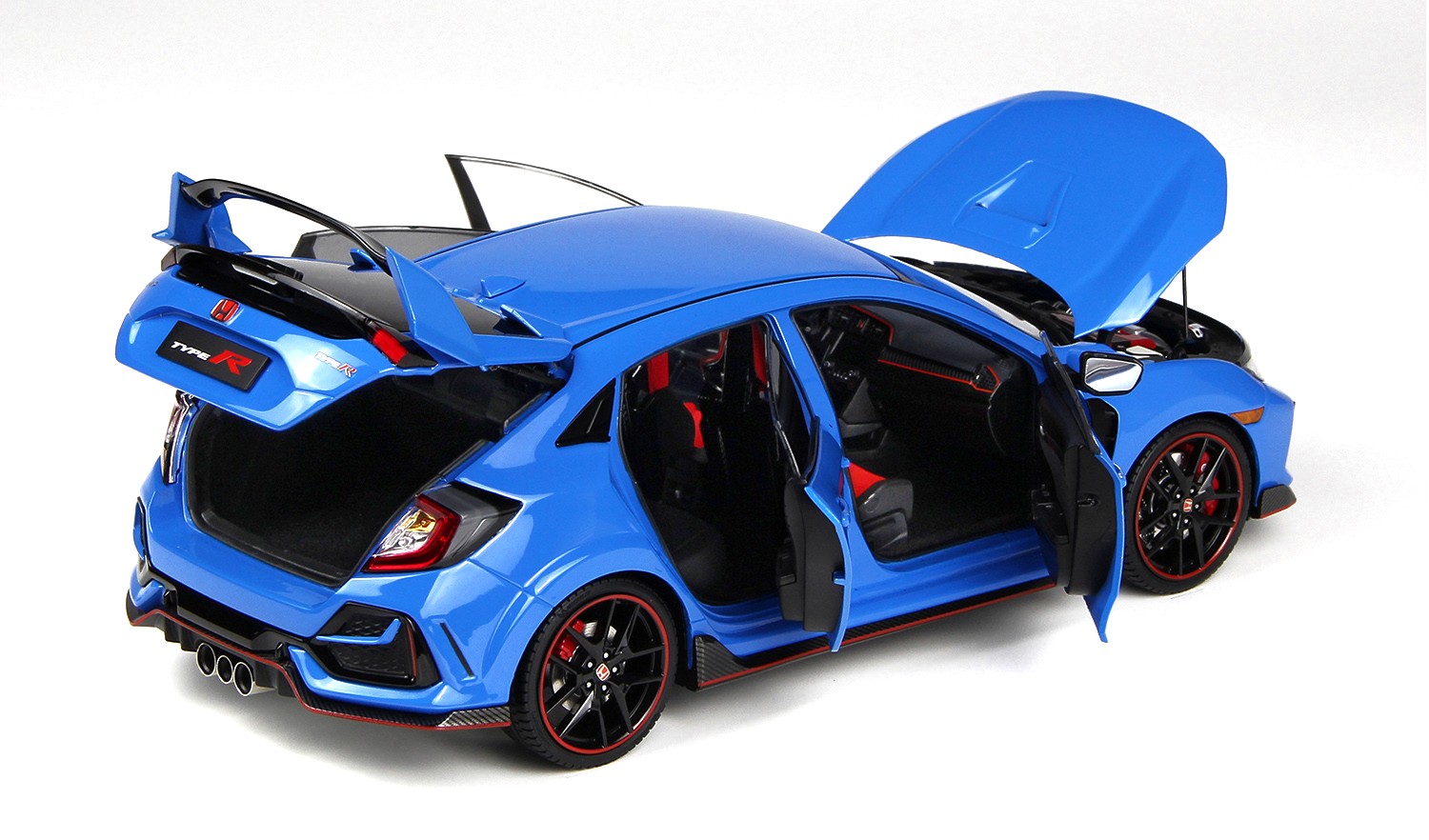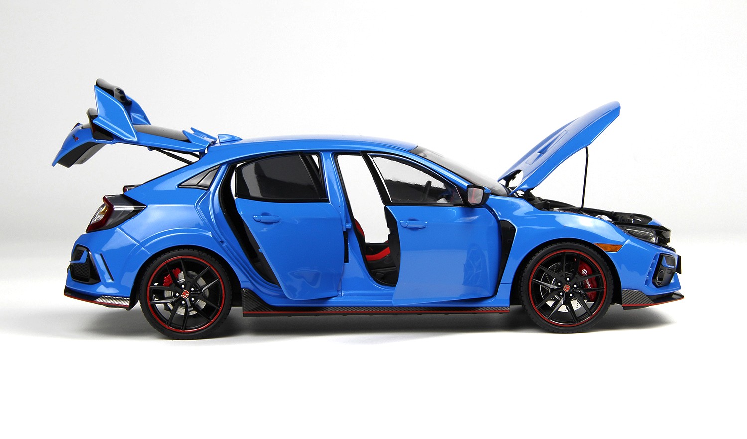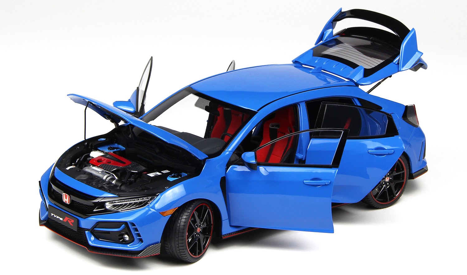 MODELLINO LCD MODELS MONTATO E VERNICIATO IN METALLO HONDA CIVIC TYPE R FK8 RACING BLUE 2020 CON PORTIERE APRIBILI SCALA 1/18