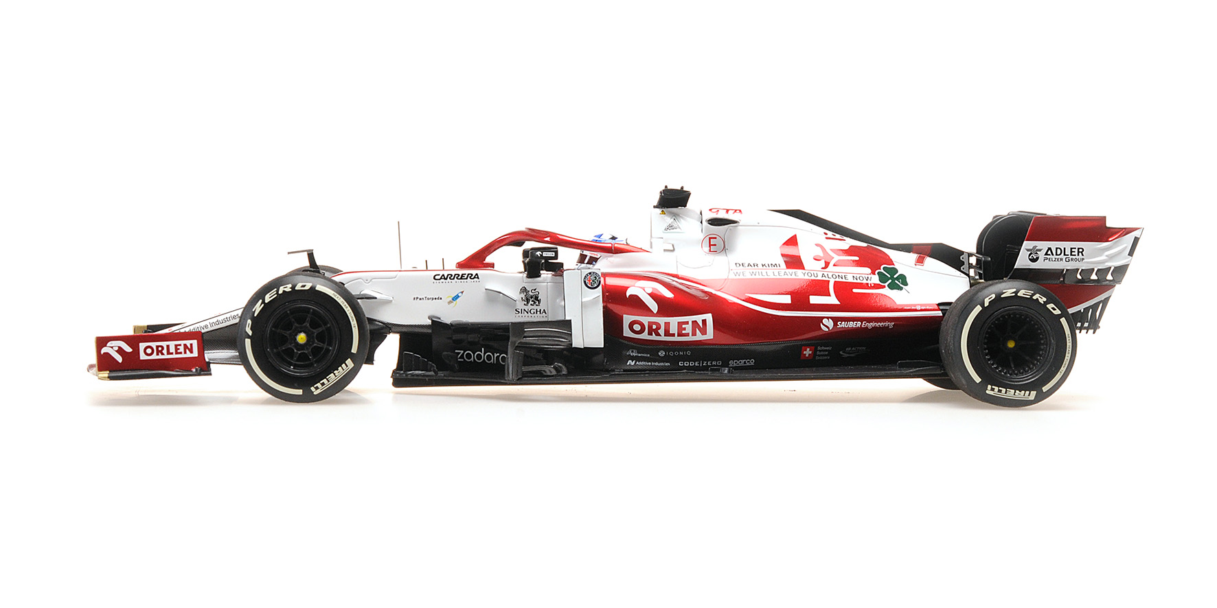 MODELLINO MINICHAMPS MONTATO E VERNICIATO IN RESINA ALFA ROMEO C41 KIMI RAIKKONEN FINAL RACE ABU DHABI GP 2021 SCALA 1/18