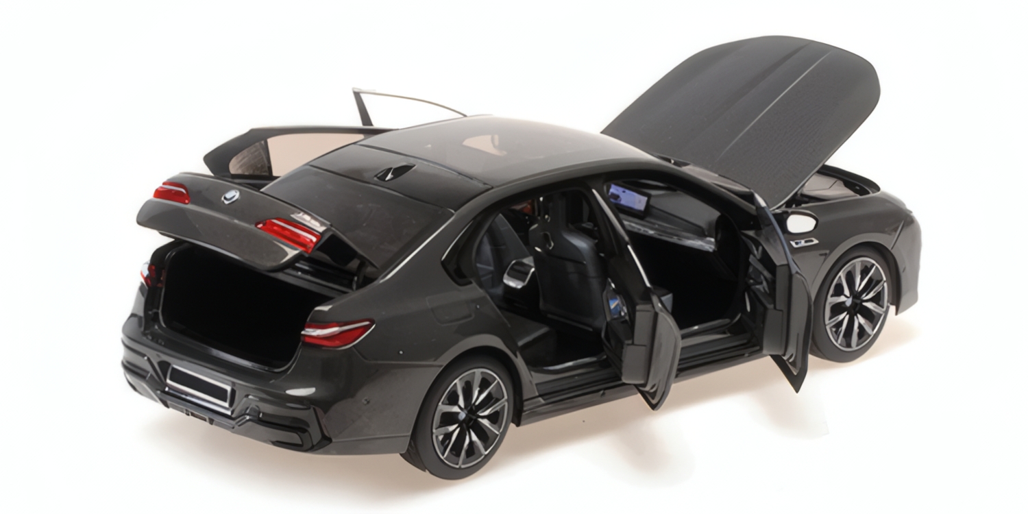 MODELLINO MINICHAMPS MONTATO E VERNICIATO IN METALLO BMW i7 M70 (G70) GREY METALLIC 2024 WITH OPENINGS SCALA 1/18