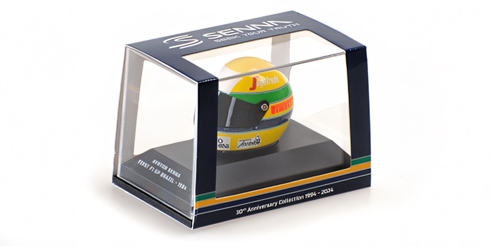 MODELLINO MINICHAMPS MONTATO E VERNICIATO IN METALLO CASCO AYRTON SENNA FIRST F1 GP BRAZIL 1984 SCALA 1/8
