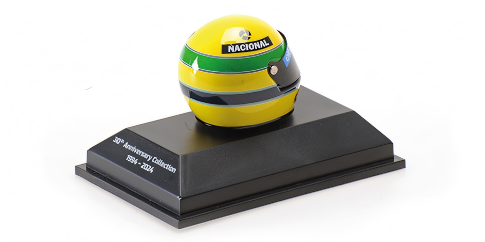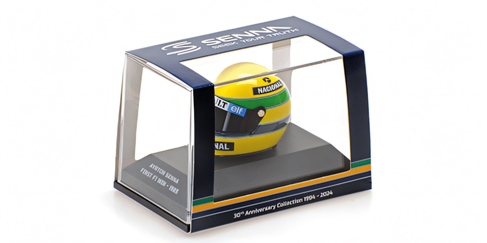 MODELLINO MINICHAMPS MONTATO E VERNICIATO IN METALLO CASCO AYRTON SENNA FIRST F1 WIN 1985 SCALA 1/8
