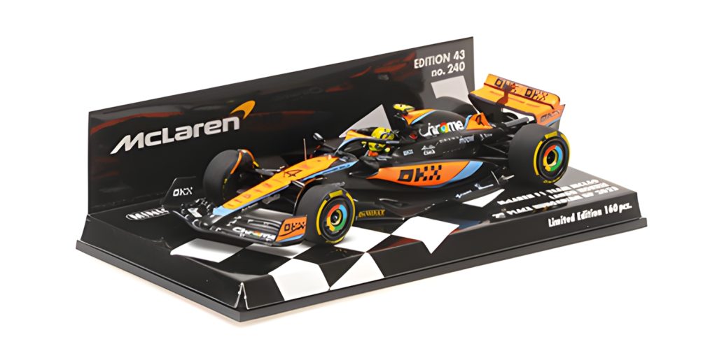 MODELLINO MINICHAMPS MONTATO E VERNICIATO IN RESINA McLAREN MCL60 LANDO NORRIS 2ND PLACE HUNGARIAN GP 2023 SCALA 1/43