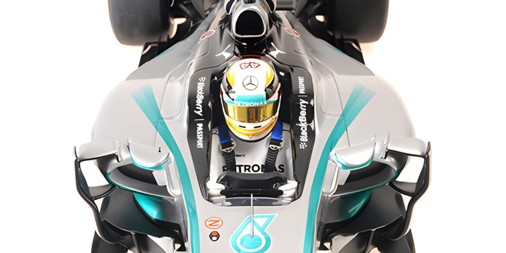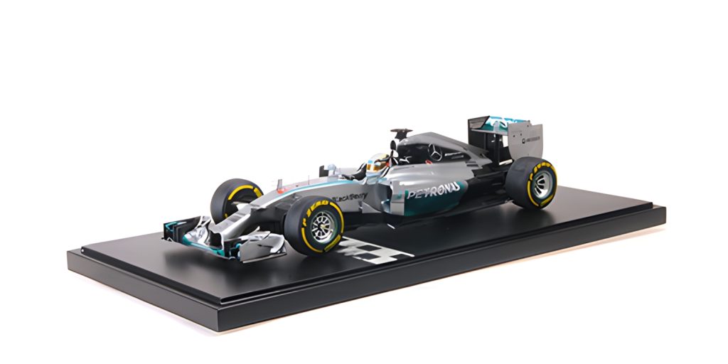 MODELLINO MINICHAMPS MONTATO E VERNICIATO IN RESINA MERCEDES AMG W05 LEWIS HAMILTON WORLD CHAMPION 2014 CON VETRINA SCALA 1/12