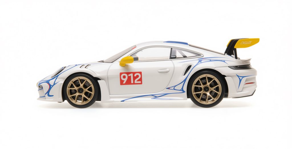 MODELLINO MINICHAMPS MONTATO E VERNICIATO IN METALLO PORSCHE 911 (992) GT3RS WHITE WITH YELLOW DECOR 2023 SCALA 1/43