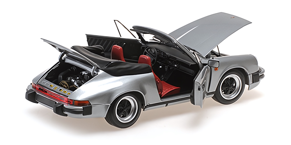MODELLINO MINICHAMPS MONTATO E VERNICIATO IN METALLO PORSCHE 911 CARRERA 3.2 CABRIOLET GREY METALLIC 1983 WITH OPENINGS SCALA 1/18