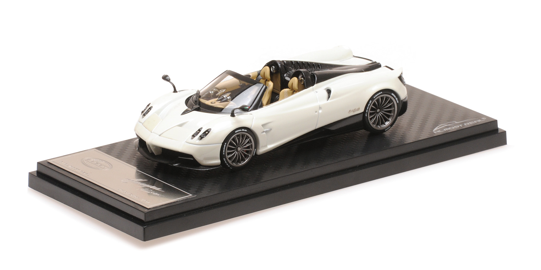 MODELLINO ALMOST REAL MONTATO E VERNICIATO IN METALLOPAGANI HUAYRA ROADSTER 2017 BIANCO FABRIANO SCALA 1/43