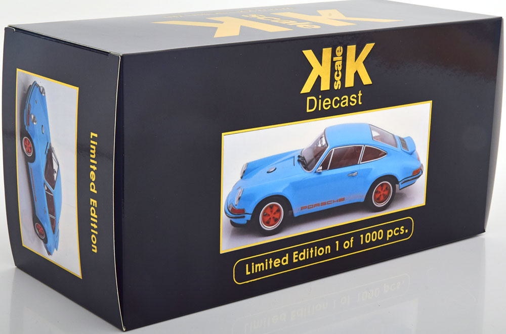 MODELLINO KK-SCALE MONTATO E VERNICIATO IN METALLOPORSCHE 911 SINGER COUPE LIGHT BLUE & ORANGE SCALA 1/18
