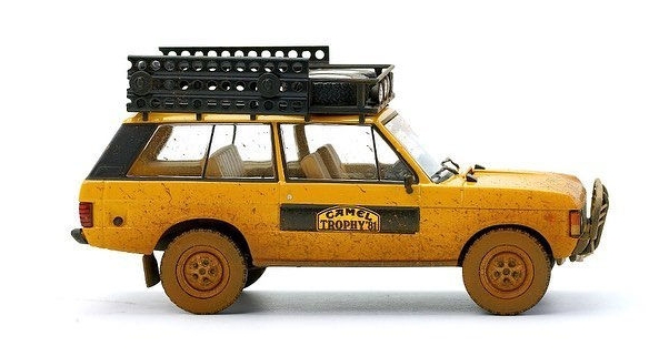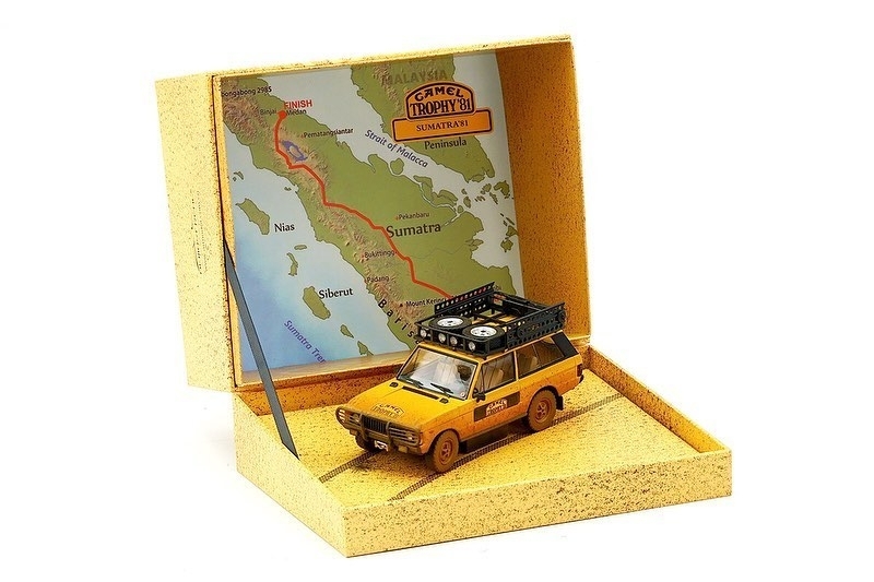 MODELLINO ALMOST REAL MONTATO E VERNICIATO IN METALLO RANGE ROVER CAMEL TROPHY SUMATRA 1981 DIRTY VERSION SCALA 1/43